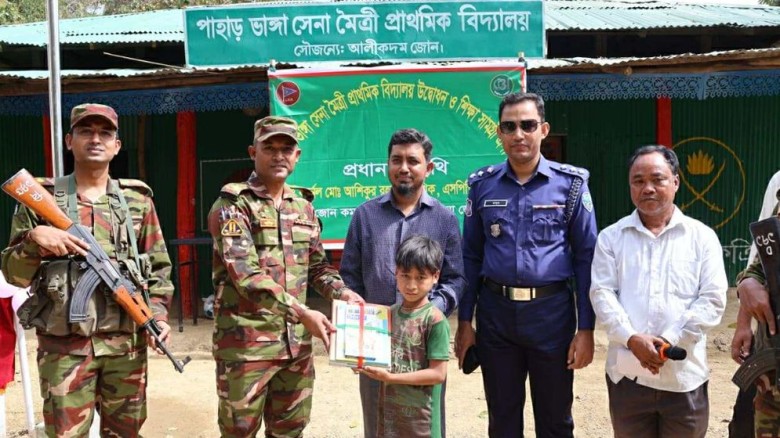 বাংলাদেশ সেনাবাহিনীর বান্দরবান রিজিয়নের অন্তর্গত আলীকদম জোনের উদ্যোগে মিয়ানমার সীমান্ত সংলগ্ন দুর্গম পাহাড়ভাঙ্গা পাড়ায় ‘সেনা মৈত্রী প্রাথমিক বিদ্যালয়’ এর উদ্বোধন করা হয়েছে।