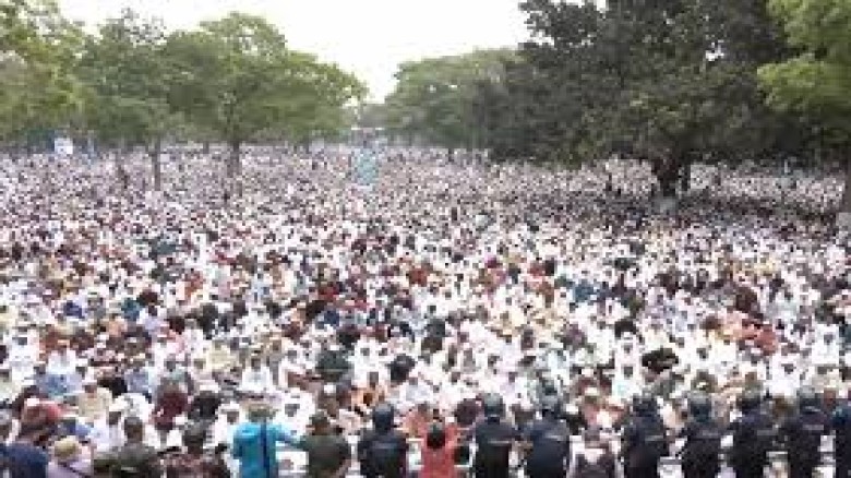 কিশোরগঞ্জের শোলাকিয়া ঈদগাহে ঐতিহ্যের ধারায় ঈদুল ফিতরের ১৯৯তম বৃহত্তম জামাত। লাখো মুসল্লির উপস্থিতিতে সকাল থেকেই জনসমুদ্রে পরিণত হয় পুরো এলাকা।